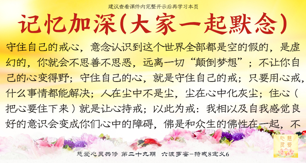 就是守戒了都没感觉自己在守戒。就像你们开车在红灯面前停下来,谁会觉得我在守戒?“你看,红灯,居然我停下来不走了。”你试试看呢?你走走看呢?所以我们“非念积念修”,什么意思?你没有念头,你的念头才会真正地修。也就是说你没有念头,你才能积极地有这个念头在修;你有念头,你怎么修你的念头啊?