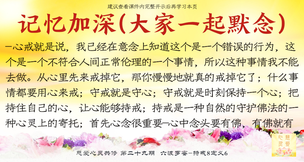 要从平时的生活当中让学佛成为一种自然。守戒要守到后来成为自然地守戒,而不是逼着自己一条一条去做。
